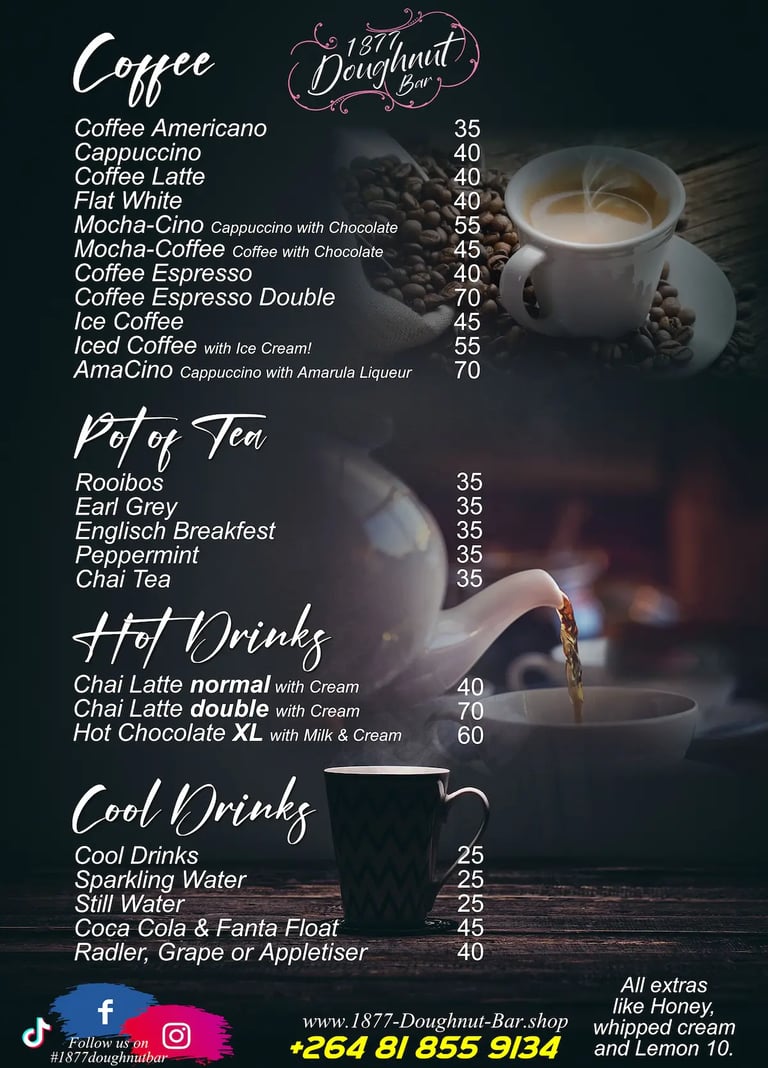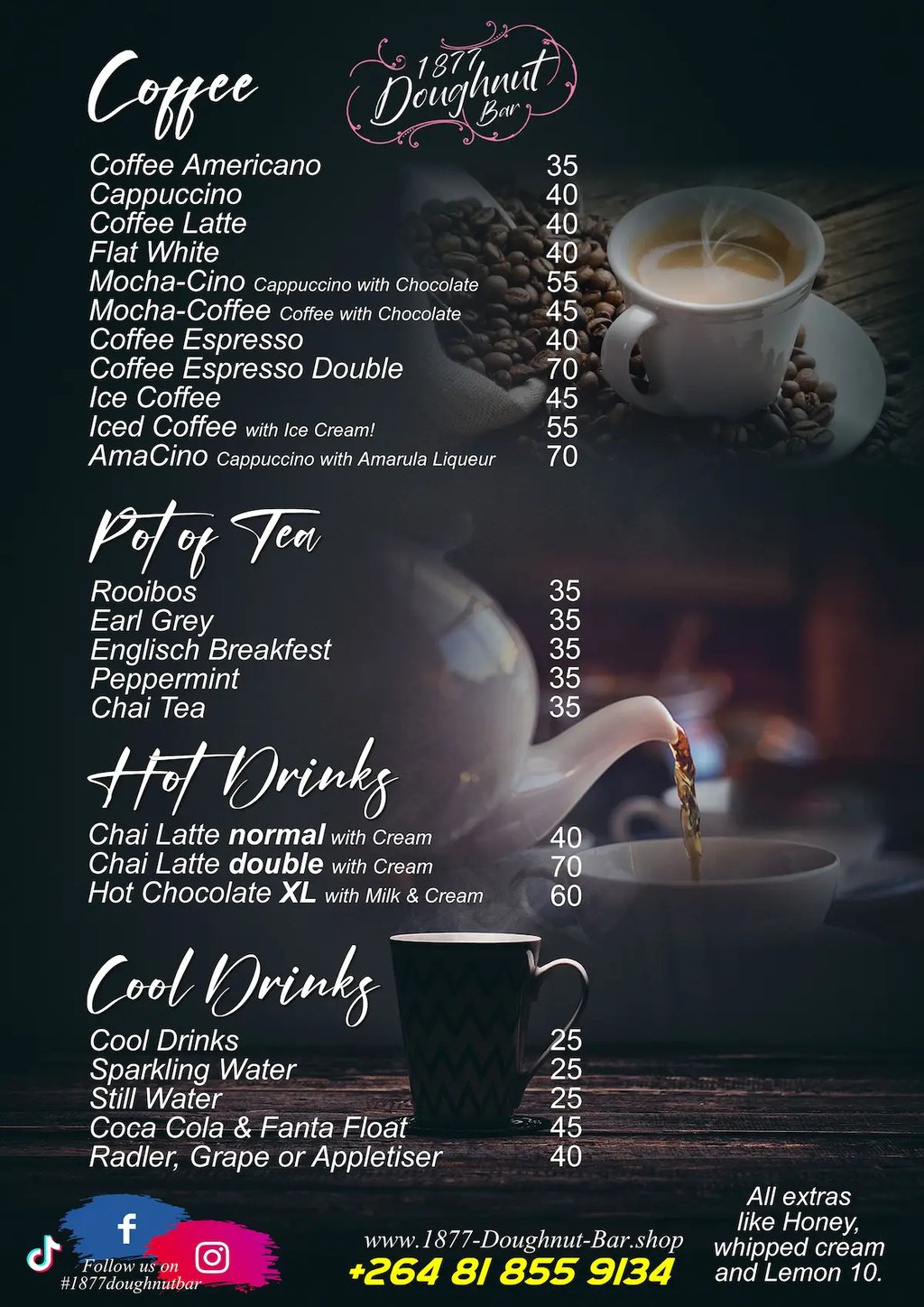 An overview of our doughnuts, cakes, coffee, waffles, crepes, ice cream sundaes and treats. Our menu.
